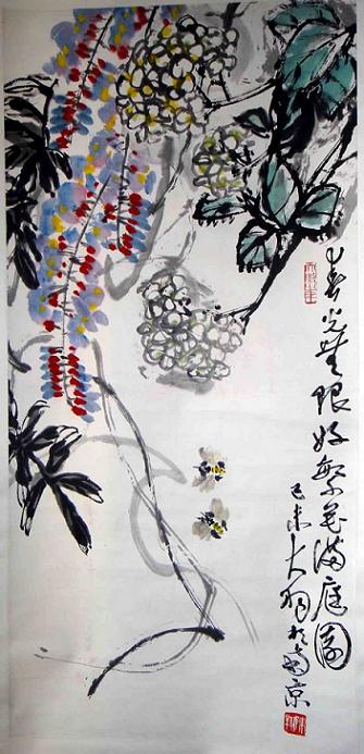 陈大羽(1912-2001)著名大写意花鸟画大师,书法家、篆刻家。以大写意花鸟而著称,尤擅画雄鸡,兼及山水、人物,作品气势宏伟,笔力雄健,浑厚酣畅。他对大写意花鸟最大的贡献,是一改传统写意文人画温文儒雅的气质,而代之以豪放的个性风格和雄强的时代特征。他在吴、齐画风基础上,强化了笔墨的表现力,尤其善于运用浓墨浓彩,形成墨彩相撞相融的强烈效果,开合充满视觉张力。进入晚年,他的笔墨语言愈趋雄浑老辣,达到极为自由和纯粹的境界。他深知大写意花鸟需要诗、书、画、印全面修养的支撑,其书法长期攻研碑体铭文,并参合了怀素、王铎以及吴、齐等名家书风,在篆体和行草上既见传统,又见性格,书风豪迈沉雄,气势纵横驰骋,结体巧拙相济,笔线遒劲有力,书画金石相得益彰,合为整体精神。 |